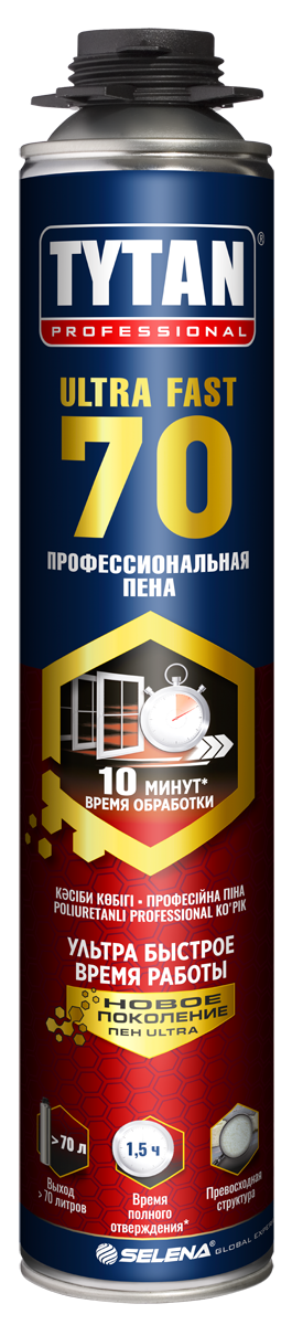 TYTAN Professional ULTRA FAST 70 Уникальная высокопроизводительная (до 77 л) профессиональная монтажная пена нового поколения для качественного и быстрого монтажа окон и дверей.